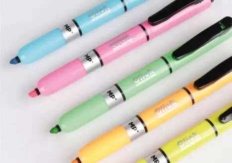 MARCADORES RETRÁCTEIS Os marcadores de texto são um artigo indispensável no estojo de lápis da escola ou do escritório. São indispensáveis para estudar ou sublinhar documentos importantes. Entre a nossa vasta gama de marcadores encontra-se o marcador MP Click Highlighter. Trata-se de um marcador novo, mais compacto e com um mecanismo retráctil. Ao contrário dos… -